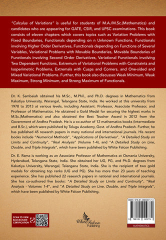 This book consisting of eleven chapters. It covered variation problems with fixed boundaries, functionals depending on n unknown functions, functionals involving higher order derivatives, functionals depending on function of several variables, variational problems with movable boundaries, movable boundaries of functionals involving second order derivatives, variational functionals involving two dependent functions, extremum of variational problems with constraints and isoperimetric problems, Extremals with cusps and corners, one sided and mixed variational problems. Further in this book we also discussed weak minimum, weak maximum, strong minimum and strong maximum of functionals.