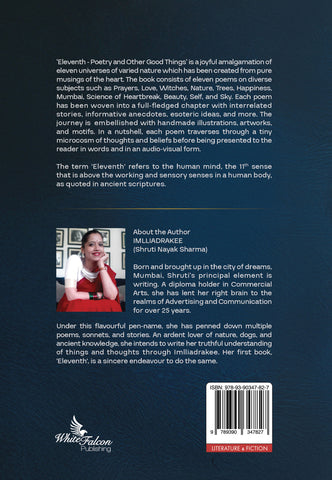 Eleventh is a collection of eleven Hindi poems, each with an elaborated chapter, written in English on a respective subject. The subjects include Prayers, Love, Witches, Nature, Trees, Happiness, Mumbai, Science of a Heartbreak, Beauty, self and sky. This one of a kind, fully illustrated book is filled with stories, ideas, anecdotes, and amusing facts related to the diverse topics. At the end of every chapter, you will also find a QR code to watch the audiovisual presentation of the poetry.