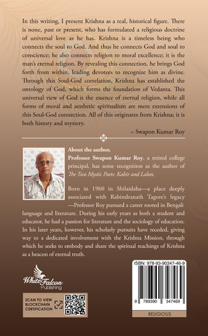 In this writing, I present Krishna as a real, historical figure. There is none, past or present, who has formulated a religious doctrine of universal love as he has. Krishna is a timeless being who connects the soul to God. And thus he connects God and soul to conscience; he also connects religion to moral excellence; it is the man’s eternal religion. By revealing this connection, he brings God forth from within, leading devotees to recognize him as divine. Through this Soul-God correlation, Krishna has established the ontology of God, which forms the foundation of Vedanta. This universal view of God is the essence of eternal religion, while all forms of moral and aesthetic spiritualism are mere extensions of this Soul-God connection. All of this originates from Krishna; it is both history and mystery.