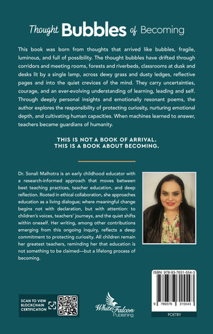 This book was born from thoughts that arrived like bubbles, fragile, luminous, and full of possibility. The thought bubbles have drifted through corridors and meeting rooms, forests and riverbeds, classrooms at dusk and desks lit by a single lamp, across dewy grass and dusty ledges, reflective pages and into the quiet crevices of the mind. They carry uncertainties, courage, and an ever-evolving understanding of learning, leading and self. Through deeply personal insights and emotionally resonant poems, the author explores the responsibility of protecting curiosity, nurturing emotional depth, and cultivating human capacities. When machines learned to answer, teachers became guardians of humanity.