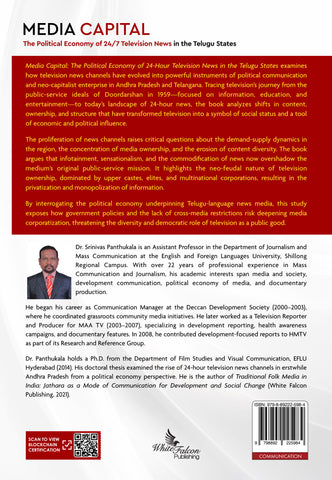 Media Capital: The Political Economy of 24-Hour Television News in the Telugu States explores how round-the-clock television news has become both a powerful political tool and a lucrative business enterprise in Andhra Pradesh and Telangana. Once rooted in the public-service goals of information and education, television has transformed into a medium driven by infotainment, sensationalism, and corporate interests. This book analyzes the economic and political forces behind the explosive growth of Telugu news channels, highlighting how ownership concentration, neo-capitalist agendas, and the absence of effective media regulation have led to the privatization and commodification of information. It raises urgent questions about media diversity, democratic discourse, and the public’s right to unbiased news in a rapidly evolving media landscape.